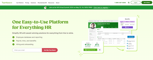 A user-friendly HR platform for small and medium-sized businesses, offering employee databases, onboarding, and time-off tracking.
