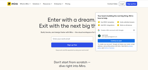 Miro’s website is a comprehensive resource for teams seeking to enhance collaboration and creativity through online whiteboarding and visual collaboration tools. With a modern and visually appealing design, the website effectively communicates the versatility and flexibility of Miro’s digital workspace platform. The website demonstrates how Miro can facilitate remote collaboration, creativity, and brainstorming sessions through clear messaging, interactive demos, and case studies, enabling teams to work together seamlessly regardless of location. Including customer testimonials and success stories showcases Miro’s impact on driving innovation and productivity for teams across various industries and use cases.
