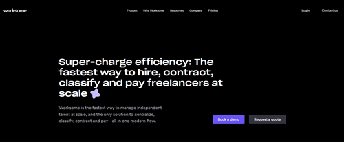 Worksome offers a SaaS website example for flexible workforce management. Businesses can efficiently source, manage, and pay freelancers through its platform, optimizing project workflows and driving cost savings.