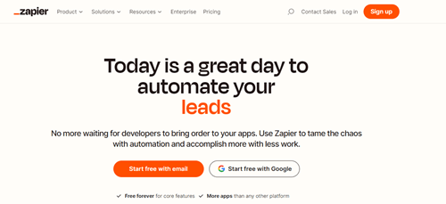 Automate workflows effortlessly with Zapier, connecting apps for seamless integration. Perfect for a SaaS website example.