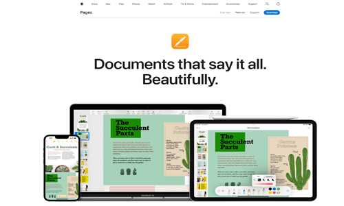 Apple Pages is a word-processing program designed for iOS and macOS platforms. It provides sophisticated layout and design features for producing visually stunning documents and a simple interface.
